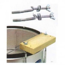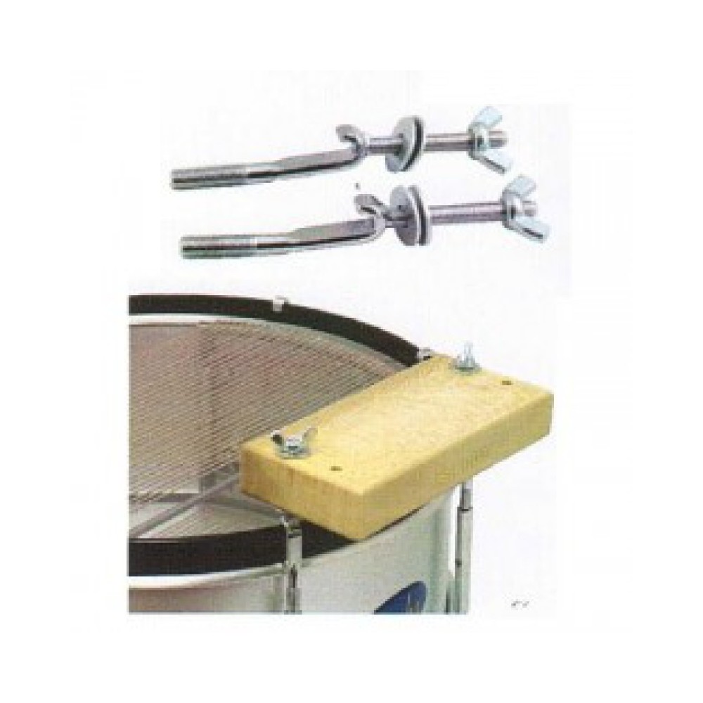 2 soportes para caja china plana colocado en tensores de redoblante de doble bordon.